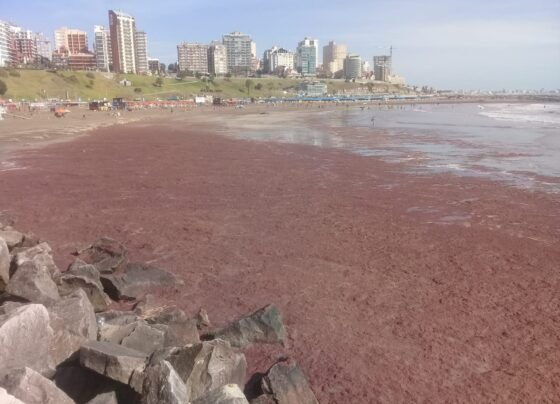algas tingem praias de vermelho